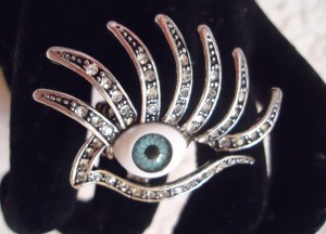 Inel Dama Ochiul Lui Allah Elastic Inox Argintiu Cristale Albe