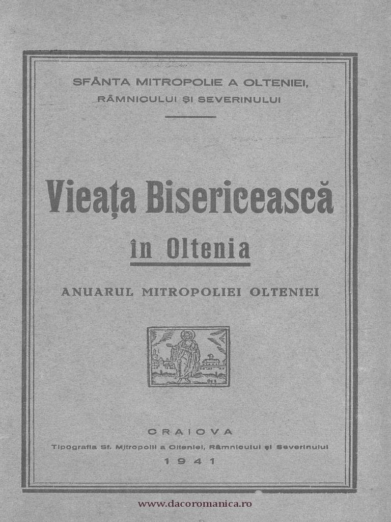 Vieaţa Bisericească In Oltenia Anuarul Mitropoliei Olteniei 1941